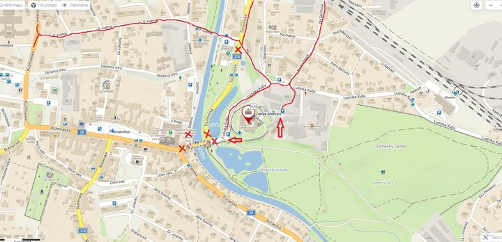From 11 June 2024 until the end of October, the bridge on road 174 over the Skalice River near the castle is closed in Březnice. The parking lots in front of the castle and in the area of the restaurant U Zámku are open - see the map for directions to the Castle of Březnice.